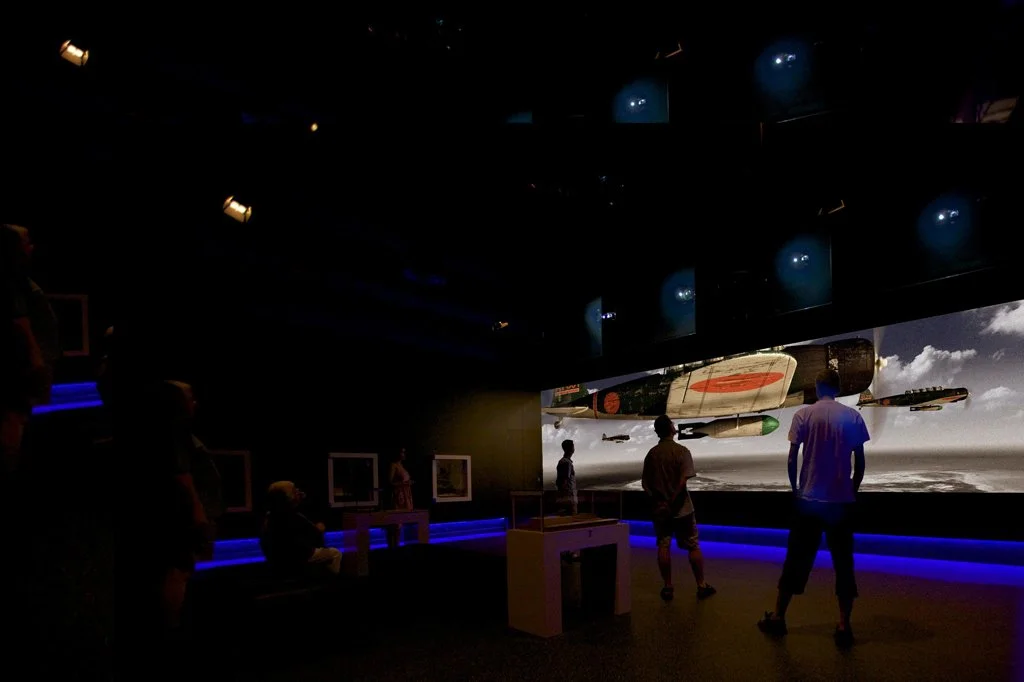 The resultant approach developed by Convergence combines the concept of a “Dispersed Mediascape”, using mobile phone technology, with a visitor hub to deliver a “museum without walls”. The hub, located at East Point uses original artefacts, archival footage and images, firsthand accounts and contemporary multi-media techniques to focus on the first bombing of Darwin by the Japanese on the 19th of February 1942.